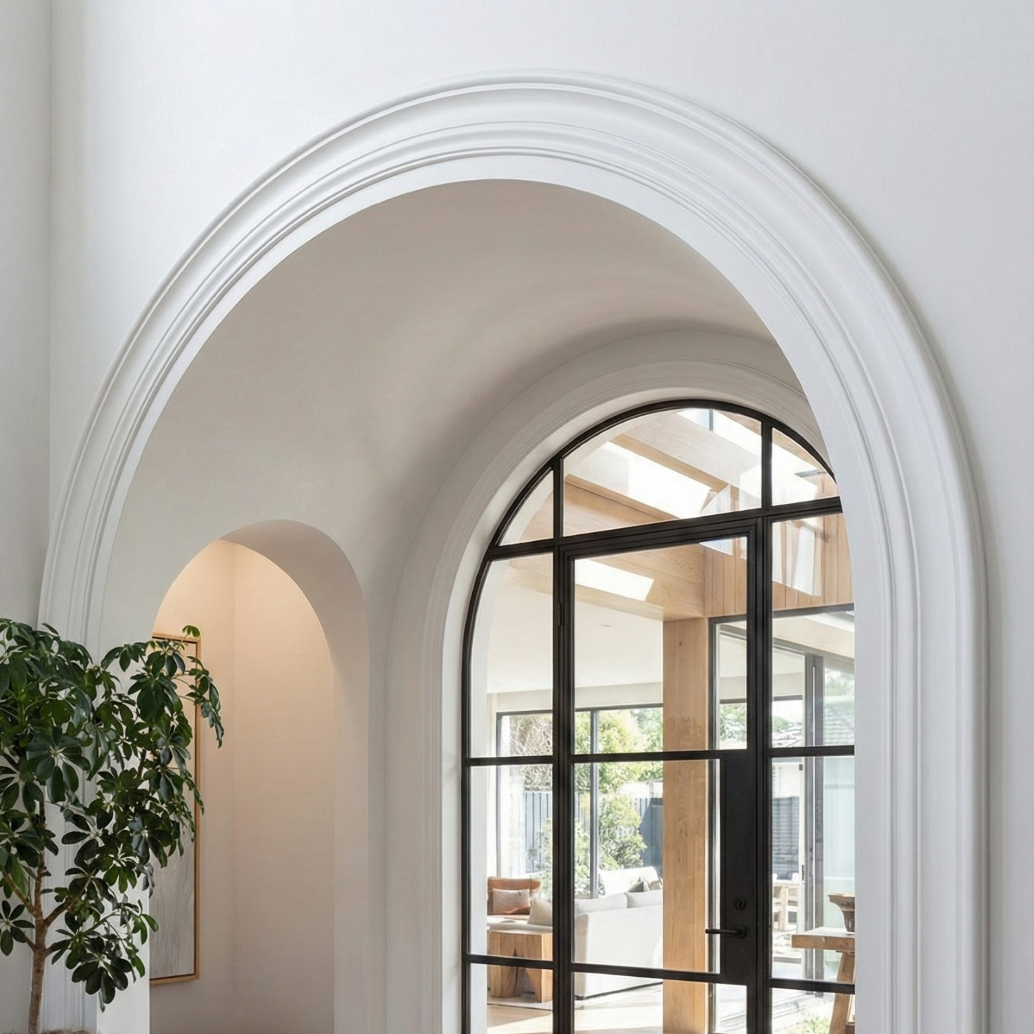Manufactured from high-quality Moisture Resistant MDF, these architraves are ideal for internal applications such as arched doorways, standard doors with curved heads, curved windows, circular feature openings, full circles, and niches. The material ensures a stable, consistent finish that is ready for prep and paint.